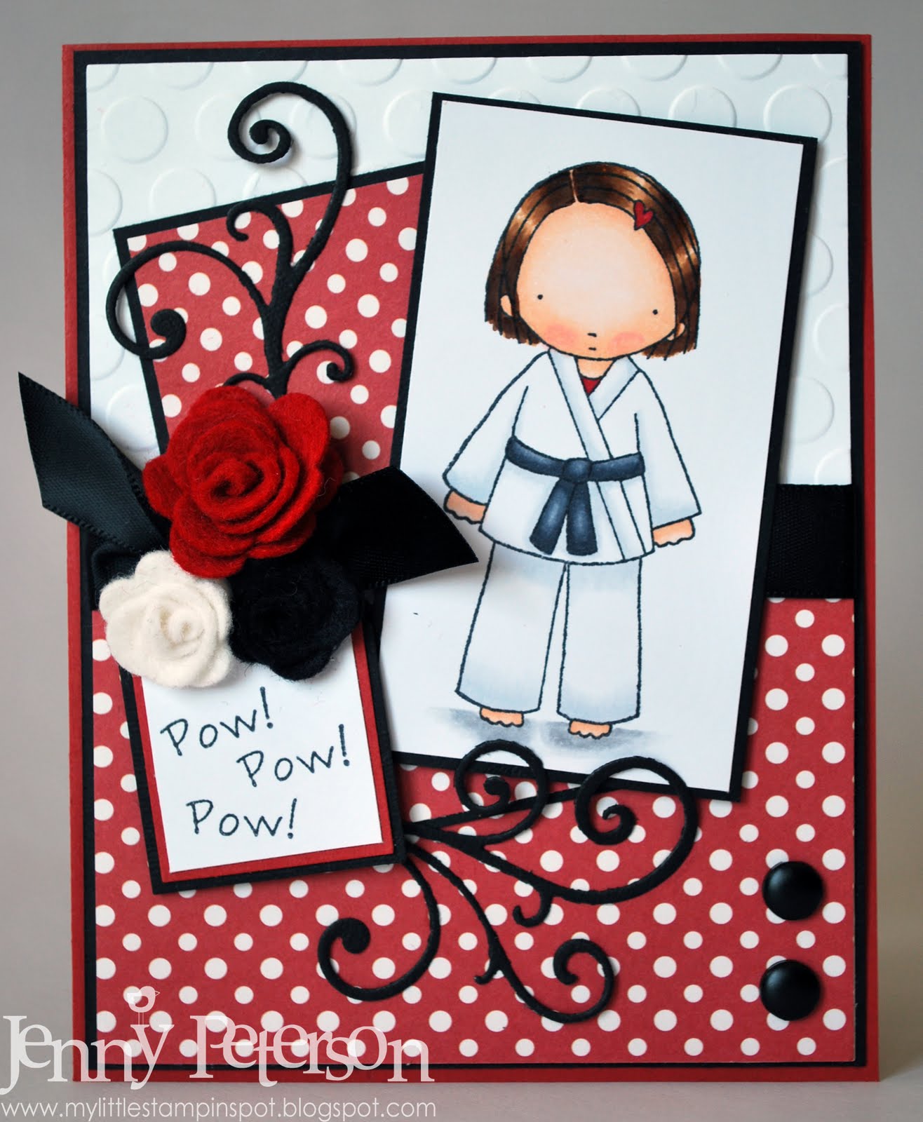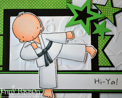 I have had this card half made (well coloured and cut out, as well as the circle die cut and embossed) for awhile now. It's my mom's birthday card. She is a quilter, so this fits her perfectly! She saw it in my stamp room the other day and asked 'Ooooo- will this be for my card??' Hahaha!!